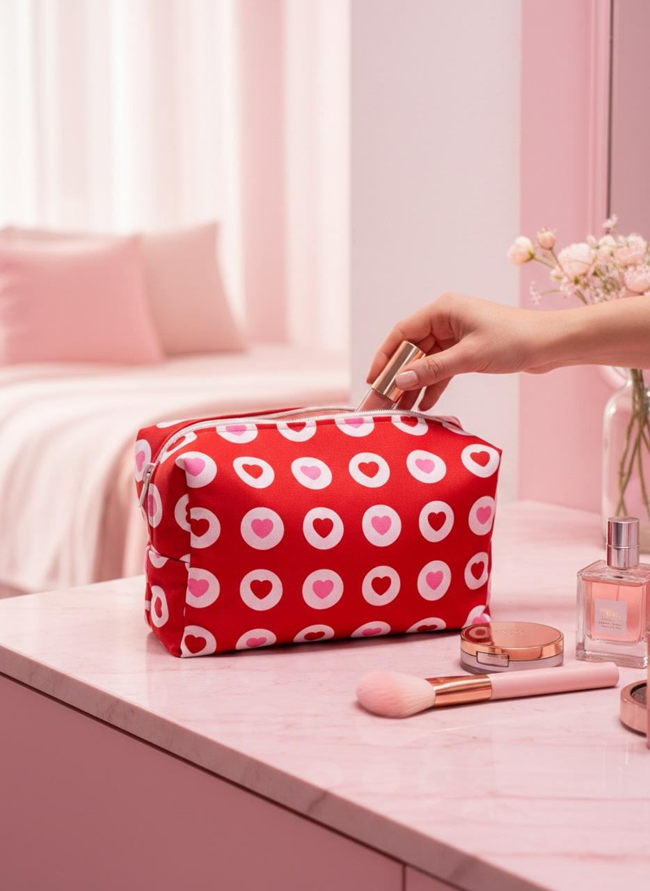 Praktyczna i urocza kosmetyczka, uszyta z wysokiej jakości bawełny, idealna do przechowywania drobiazgów, biżuterii, akcesoriów do włosów czy ulubionych kosmetyków. Wnętrze wykonane z bawełny surowej, dzięki czemu całość jest naturalna i przyjemna w dotyku. Kosmetyczki są średnio sztywne – zachowują kształt, ale jednocześnie pozostają lekkie i elastyczne.