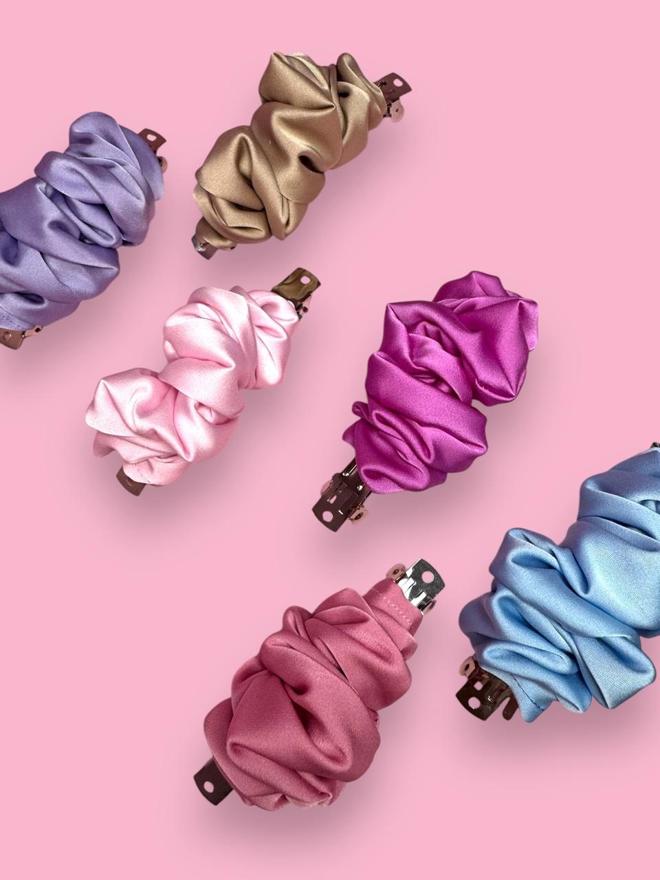 Te eleganckie spinki o długości 10 cm są wykonane z miękkiej, matowej tkaniny, która nadaje im wyjątkowego charakteru. Dzięki bogatej gamie kolorów – od pastelowego różu i lawendowego fioletu po głęboką purpurę i złote odcienie – będą idealnym dodatkiem zarówno na co dzień, jak i na wyjątkowe okazje. Marszczony materiał dodaje im objętości i stylowego wyrafinowania, a solidne zapięcie zapewnia trwałość i komfort noszenia. Idealne do utrzymania włosów w ryzach i podkreślenia każdej fryzury!